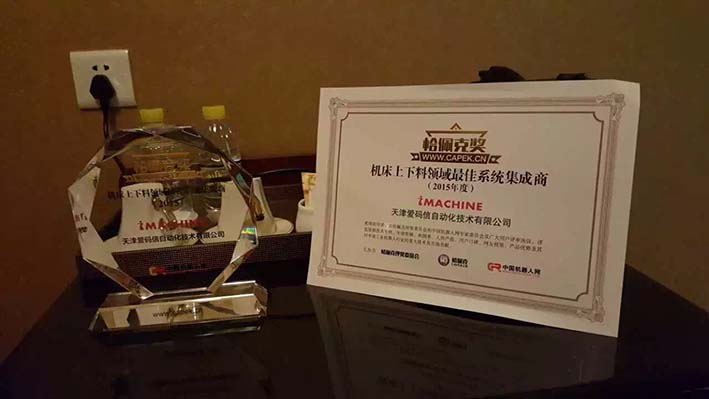 天津爱码信在2015年度,通过团队的努力,获得了业界的一致好评,荣获机床上下料领域最佳系统集成商奖。